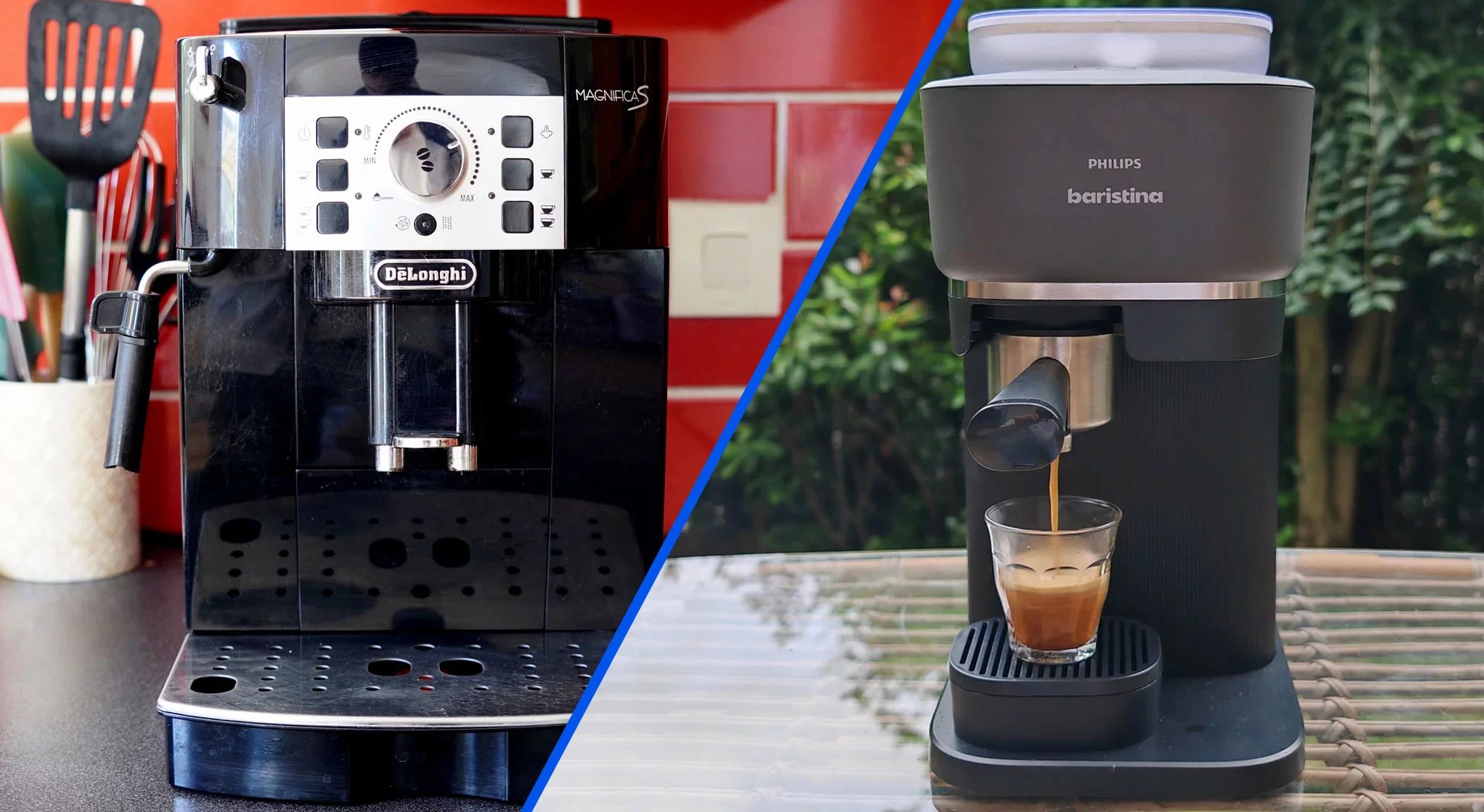 Dans le monde des machines à expresso avec broyeur, deux modèles se démarquent en ce moment par leur rapport qualité-prix et leurs fonctionnalités : la Delonghi Magnifica S et la Philips Baristina sont toutes les deux commercialisées sous la barre des 300 euros. La Philips Baristina vient tout juste d’arriver dans le commerce et s’est révélée être une très bonne alternative avec son système à percolation, un format plus compact et son design élégant.