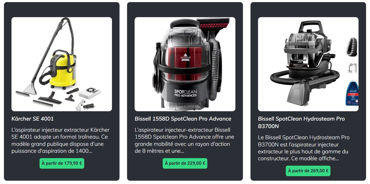 » Pour en savoir plus, découvrir notre page Comparatif des aspirateurs injecteurs extracteurs
